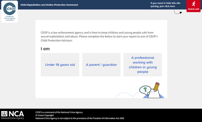 If you or anyone you know is worried about Child Exploitation, Online Protection or anything related to Internet safety please click the link below which will take you to the CEOP reporting website, CEOP is a law enforcement agency and is here to keep children and young people safe from sexual exploitation and abuse: